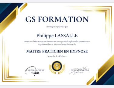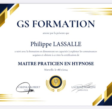 Depuis 2024, je me suis également formé à l'hypnose thérapeutique, incluant des spécialisations en hypnose, Ericksonienne et en hypnose Elmanienne ,ce qui me permet d'accompagner mes clients avec des techniques variées et adaptées à leurs besoins.