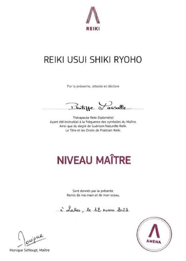Je suis diplômé, maître Reiki, depuis 2023 avec une expertise reconnue dans cette discipline énergétique